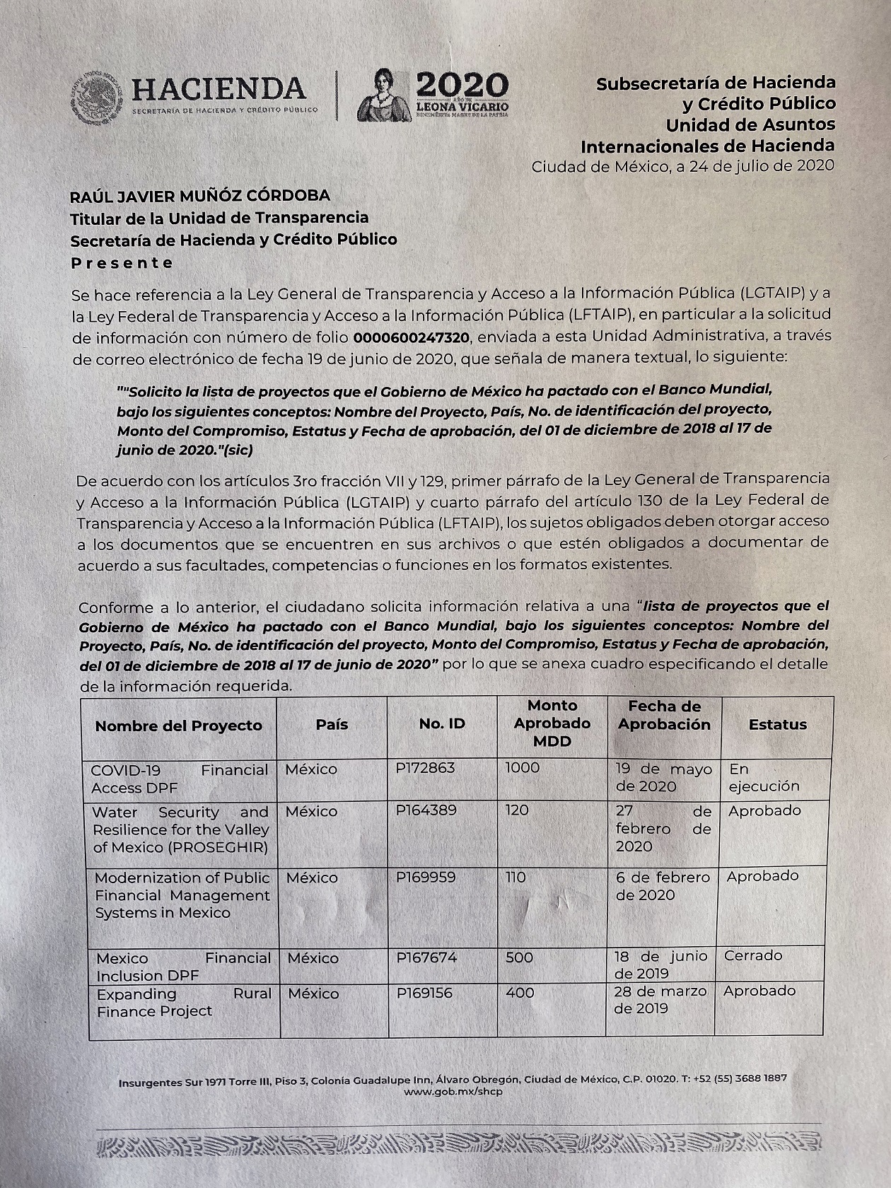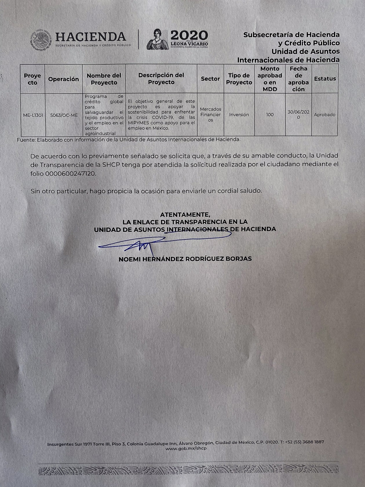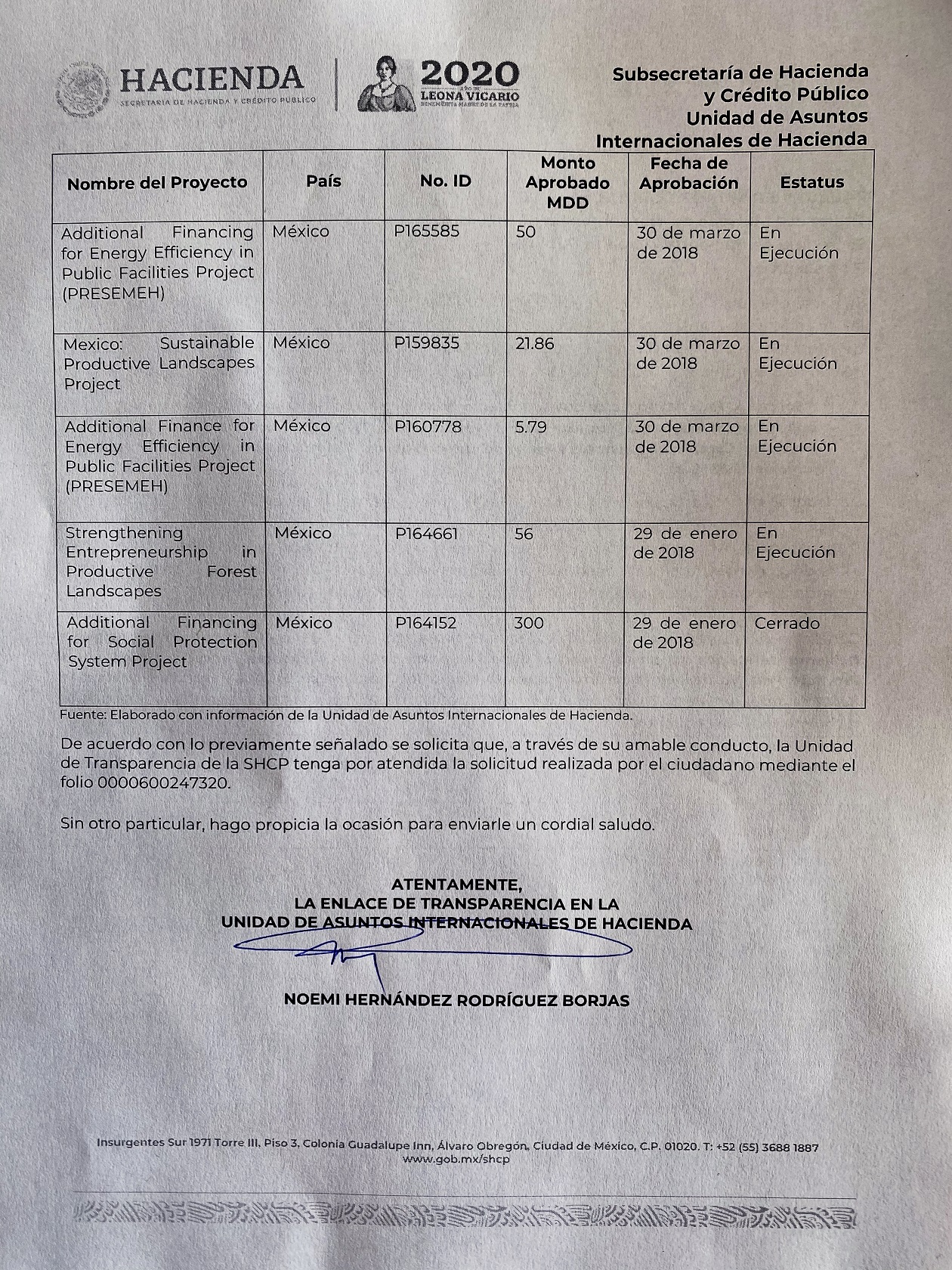 Con la administración del presidente López Obrador, la banca internacional ha “formalizado y cerrado”  cinco compromisos, los cuales ascienden a 2 mil 130 millones de dólares (un aproximado de 45 mil 645 millones 900 mil pesos, con el tipo de cambio de 21.43 pesos, al 8 de octubre en curso)  así lo revela la solicitud de información 0000600247320 en respuesta a Contralínea.