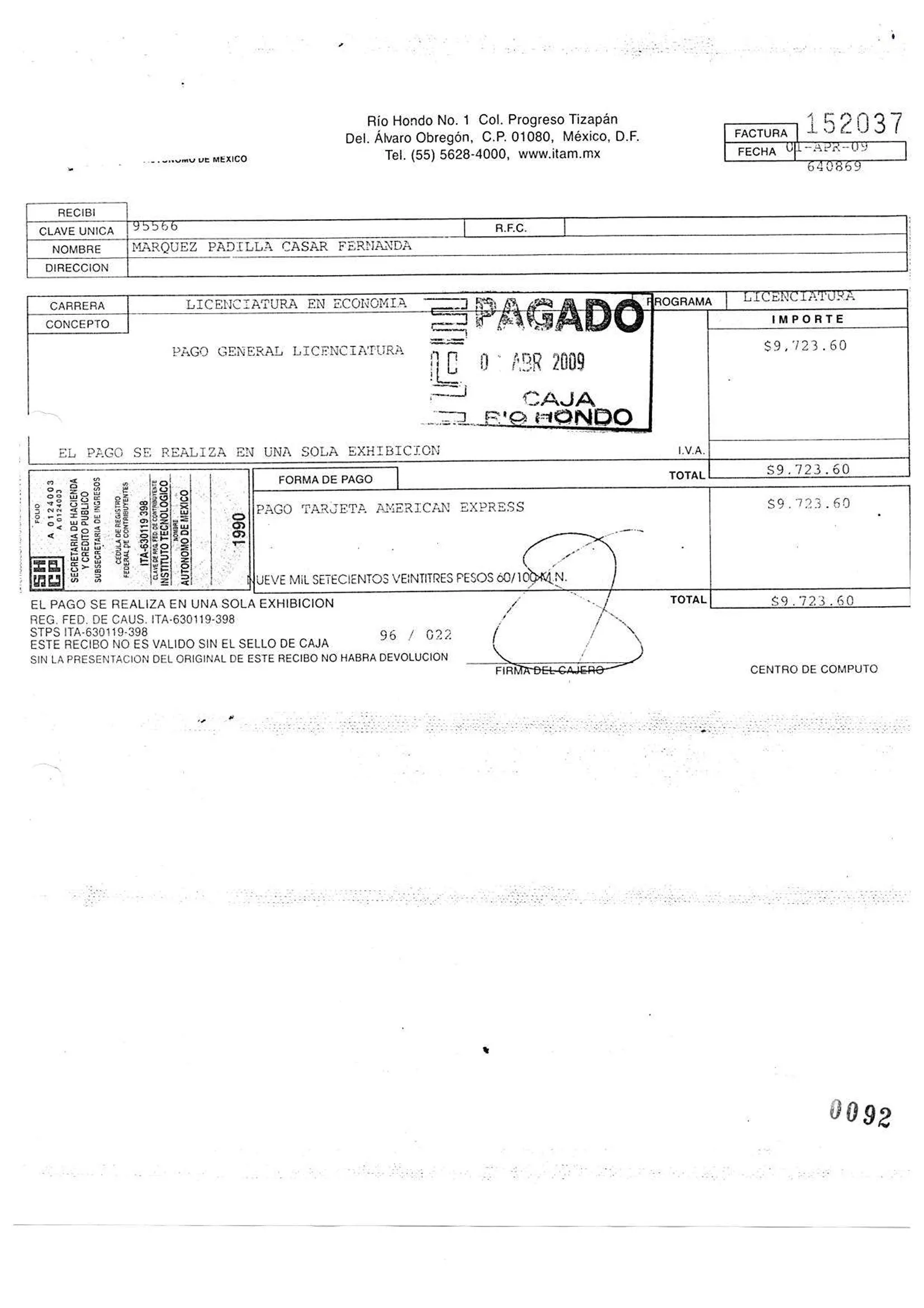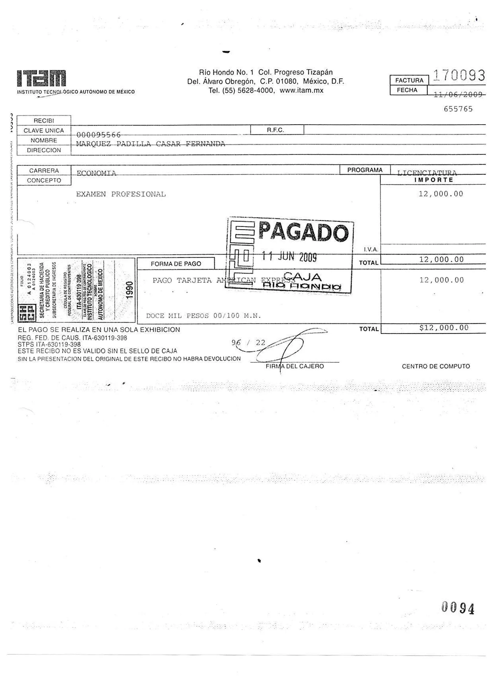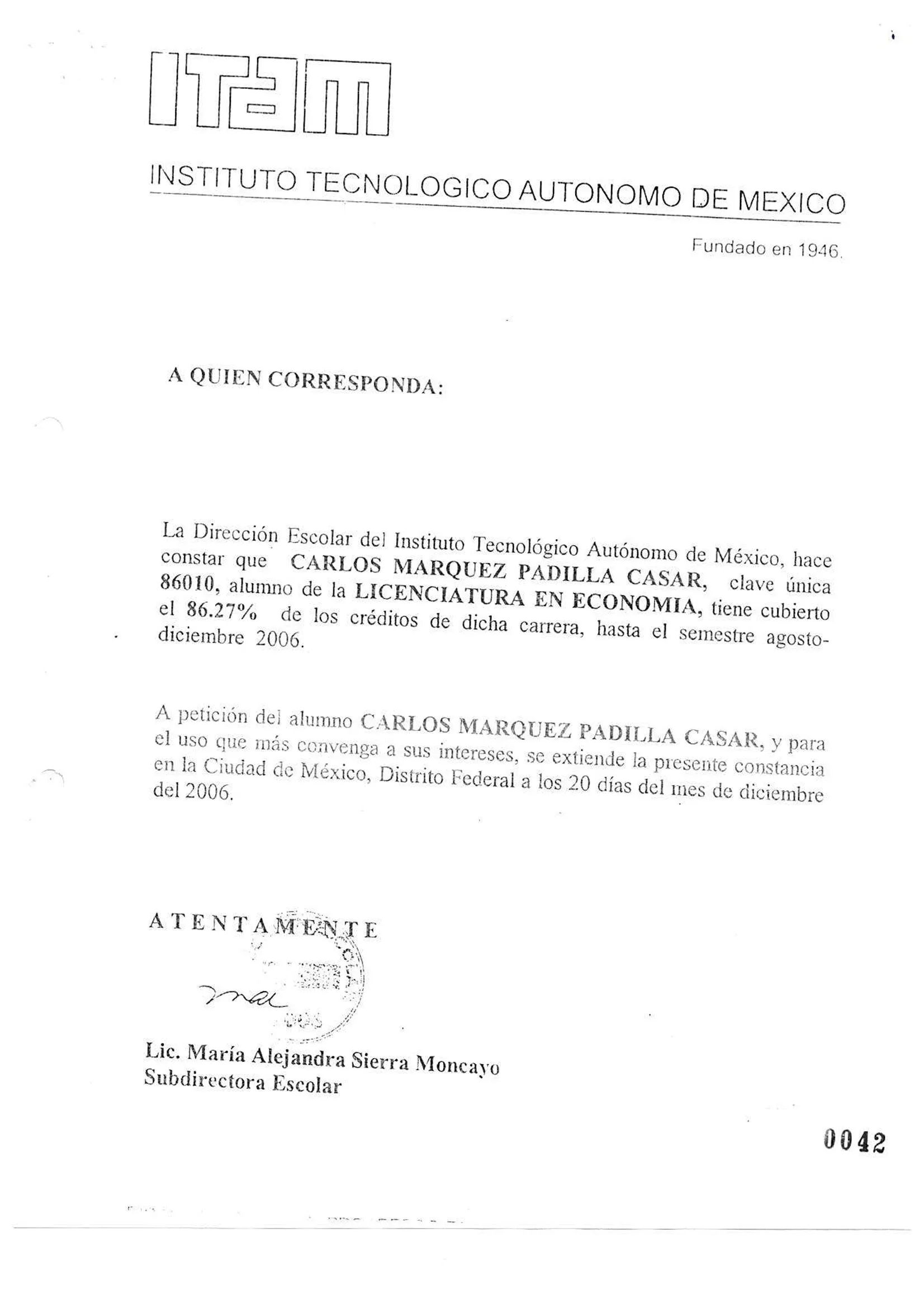 De acuerdo con el expediente, en esa universidad privada, Carlos y Fernanda Márquez Padilla Casar estudiaron su licenciatura y su maestría, ambas en economía, a costillas del erario de la nación. Los pagos mensuales iban de los 3 mil hasta los 12 mil pesos, aunque también se cargaron pagos extras –como por ejemplo, uno de 900 pesos, para que obtuviera su “certificado legalizado”–, consta en las facturas que la familia de Casar Pérez entregó a la petrolera a cambio de recibir el recurso público.