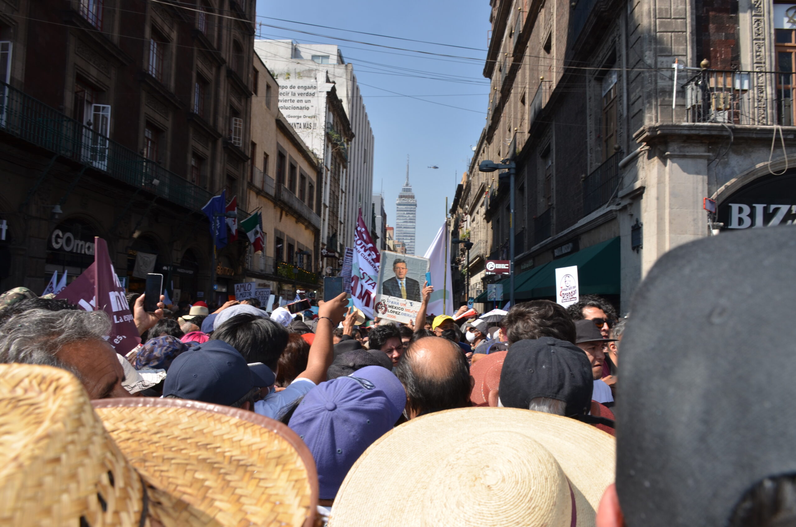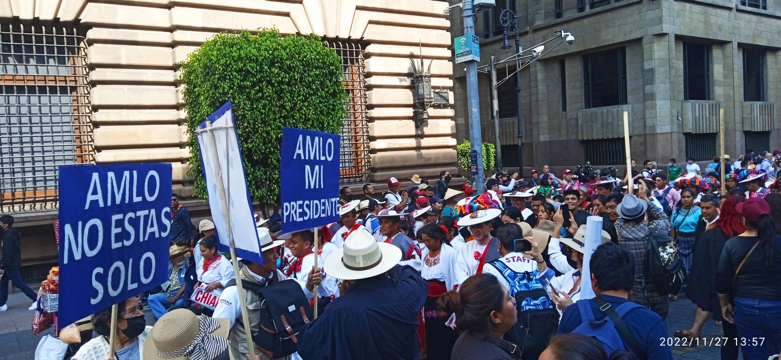Aún no despuntaba el amanecer de este 27 de noviembre cuando ya arribaban al Zócalo capitalino familias completas, parejas y hasta algunos solitarios. Poco a poco se llenaba la plancha de pancartas donde se leía desde la clásica frase “amor con amor se paga”, hasta otras más creativas: “ni por acarreo ni por desmemoria, el pueblo está aquí por el llamado de la historia”; “México te AMLO sin jueces ni senadores corruptos”; “larga vida al caudillo de la revolución de las conciencias, larga vida presidente AMLO”; “me canso ganso, y no transo”.