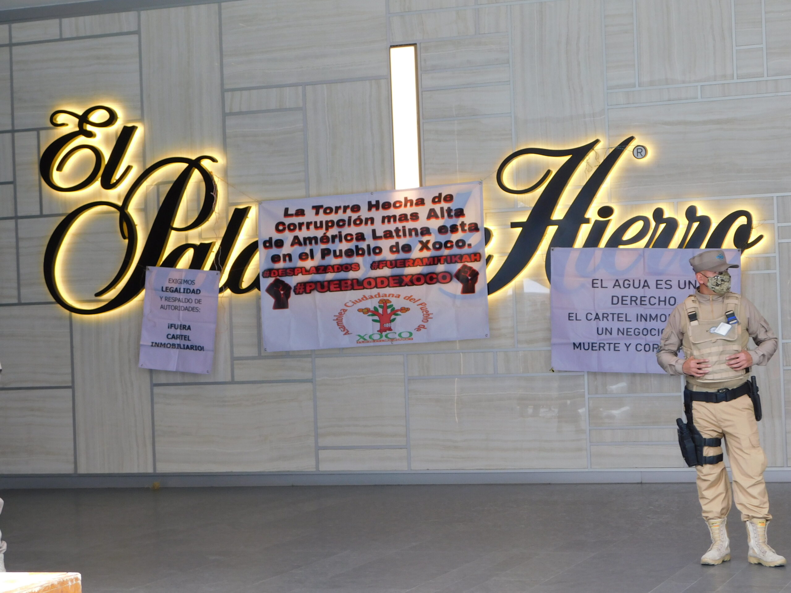Violaciones a los derechos humanos a la consulta previa, a la protesta, al agua, al medio ambiente sano, a la cultura –específicamente a las tradiciones–, a la vivienda digna y a la información son apenas una muestra de las repercusiones de la Torre Mítikah en los habitantes del pueblo originario de Xoco, en la Ciudad de México. En complicidad con la desarrolladora Fibra Uno, autoridades de la alcaldía Benito Juárez han amedrentado –con grupos de choque y de forma sistemática– a los opositores, al grado de romper el tejido social y provocar el desplazamiento forzoso de decenas de personas. Quienes aún resisten, han sumado a sus rutinas diarias medidas de autoprotección para evitar represalias, pues ya han sido objeto de golpizas. Consultado por Contralínea, el gobierno capitalino asegura que ya están listas las denuncias penales en contra de la inmobiliaria