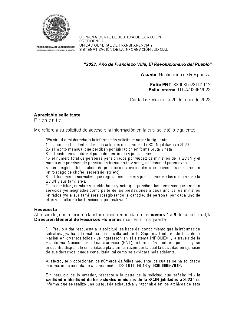 Ni la lista de ministros en retiro a los que cada mes se les paga ni el monto –que podría ir entre 230 mil y 290 mil pesos– es del todo transparente, pues sistemáticamente la Suprema Corte ha respondido a medias esta información. Ello, a pesar de que en algunas resoluciones acerca del Inai, la mayoría de los ministros y ministras ha asegurado que les importa mucho la transparencia y la rendición de cuentas gubernamental.