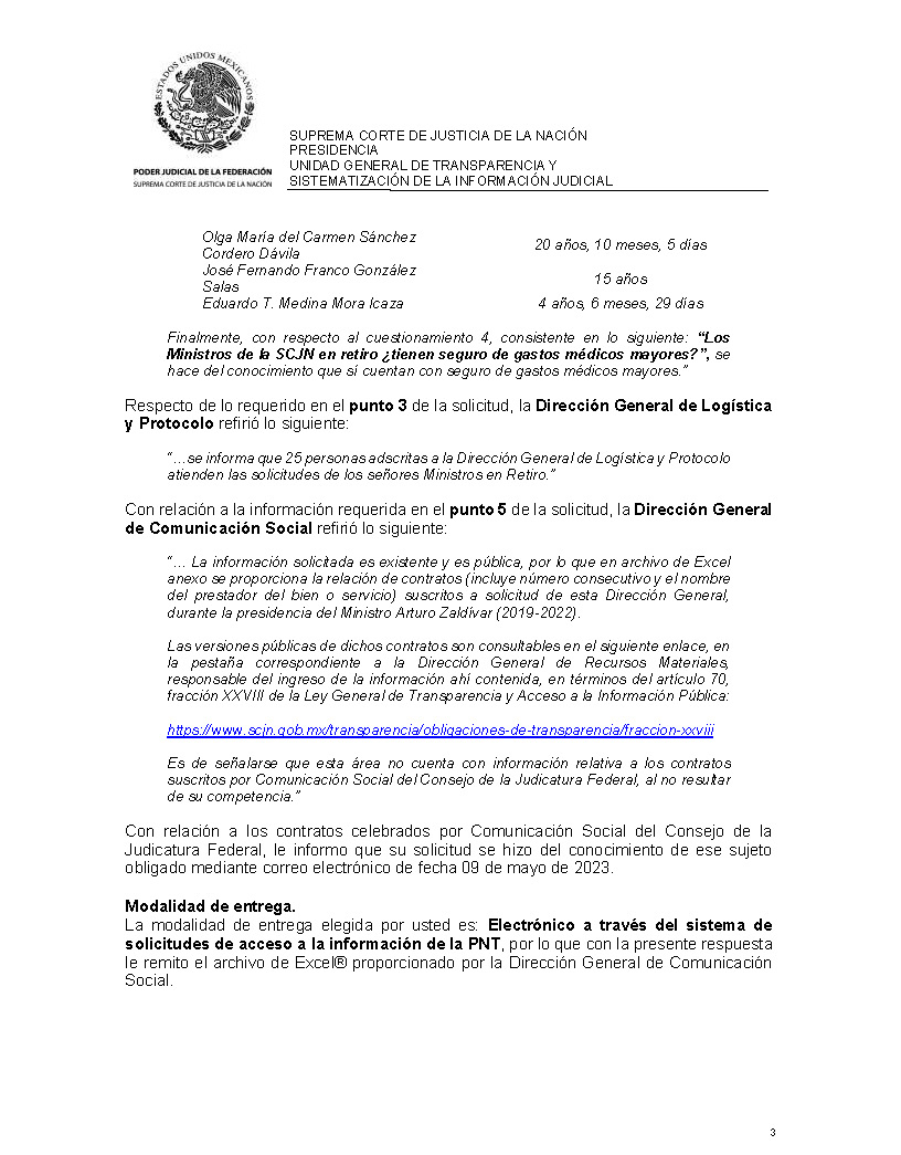 De este documento, llama la atención el dato de Eduardo Medina Mora, quien renunció al cargo de ministro el 8 de octubre de 2019, fecha en que el Senado de la República aprobó su dimisión.