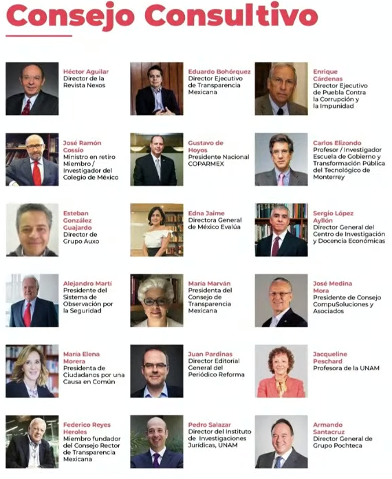 De acuerdo con la Unidad de Inteligencia Financiera, entre sus mecenas están: el gobierno de Estados Unidos a través de la USAID –uno de los brazos de la CIA–; fundaciones extranjeras ligadas a la derecha global (NED, The Ford Foundation, John And Catherine T Macarthur Foundation, International Community Foundation, Rockefeller Bros Fund Inc, e Intelligent Mexican Marketing Inc); así como la élite de la oligarquía mexicana. Por ejemplo, el magnate Germán Larrea, a través de Grupo México; Laboratorios PISA –empresa ligada a la muerte de 17 menores de edad en hospitales del Estado de México; 16 de ellos, bebés prematuros; Tiendas Chedraui y Soriana; Claudio X González Laporte –presidente de Kimberly Clark y padre de Claudio X González Guajardo–; Alejandro Ramírez Magaña, dueño de Cinépolis; Valentín Díez-Morodo, mediante su Fundación Maelva; Antonio del Valle Perochena, con su Fundación Kaluz, entre otros. [Ver https://contralinea.com.mx/interno/semana/eu-grupo-mexico-laboratorios-pisa-dueno-de-cinepolis-entre-los-mecenas-de-mexicanos-vs-corrupcion/ y https://contralinea.com.mx/wp-content/uploads/2024/08/2.-14082024-UIF-Mexicanos-contra-la-Corrupcion.pdf ]