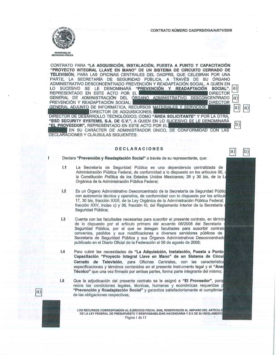 Los contratos involucran a las empresas NSO Group, Comercializadora de Soluciones Integrales Mecale, SA de CV; KBH Aviation, SA; Proyecto Semilla, S.A. de C.V; Artículos Textiles, Equipo y Accesorios MV, SA de CV; Comercializadora Antsua, SA de CV; BSD Security Systems, SA de CV; BSD London Hightech and Project Management LP; y Security Tracking Devices, SA de CV.