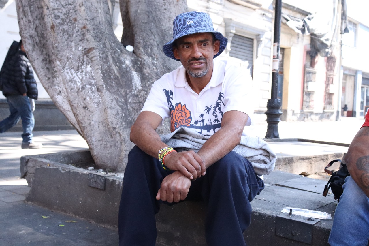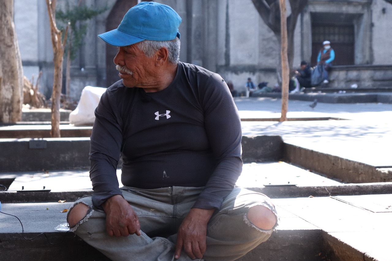 En esta plaza, algunas personas en indigencia han encontrado un refugio. Don Luis Hernández pasa su día en este sitio, junto a jóvenes, mujeres, hombres e infantes que también viven en la calle. Son, quizá, lo más cercano a una familia.