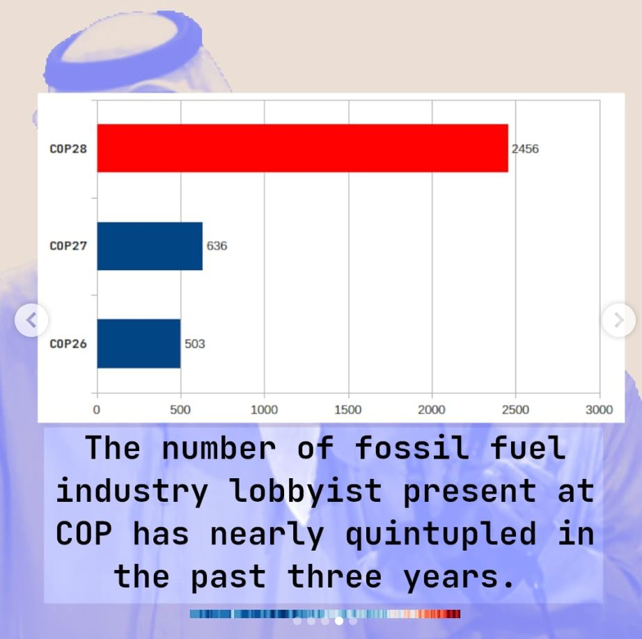 Imagen 2. Cada vez hay más representantes de la industria fósil en las Conferencias de las Partes.