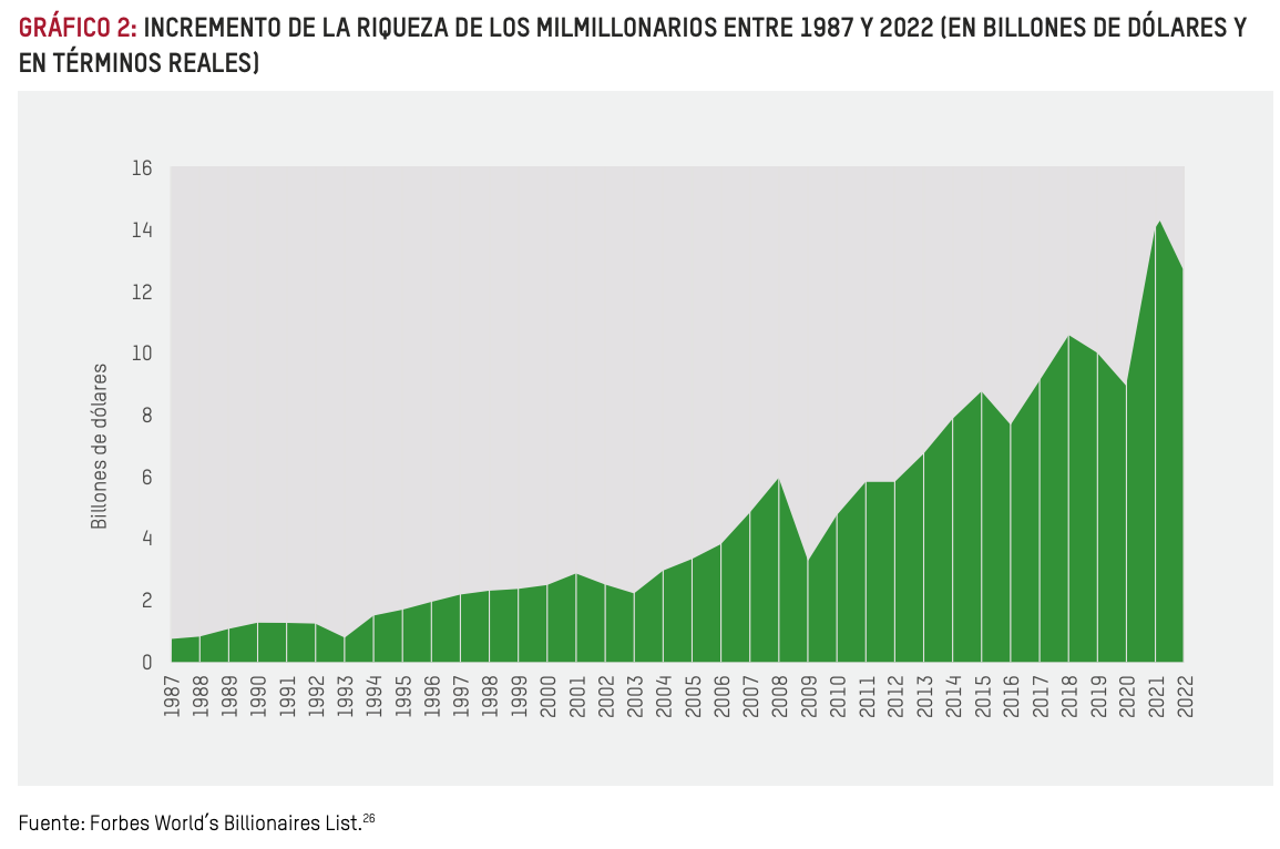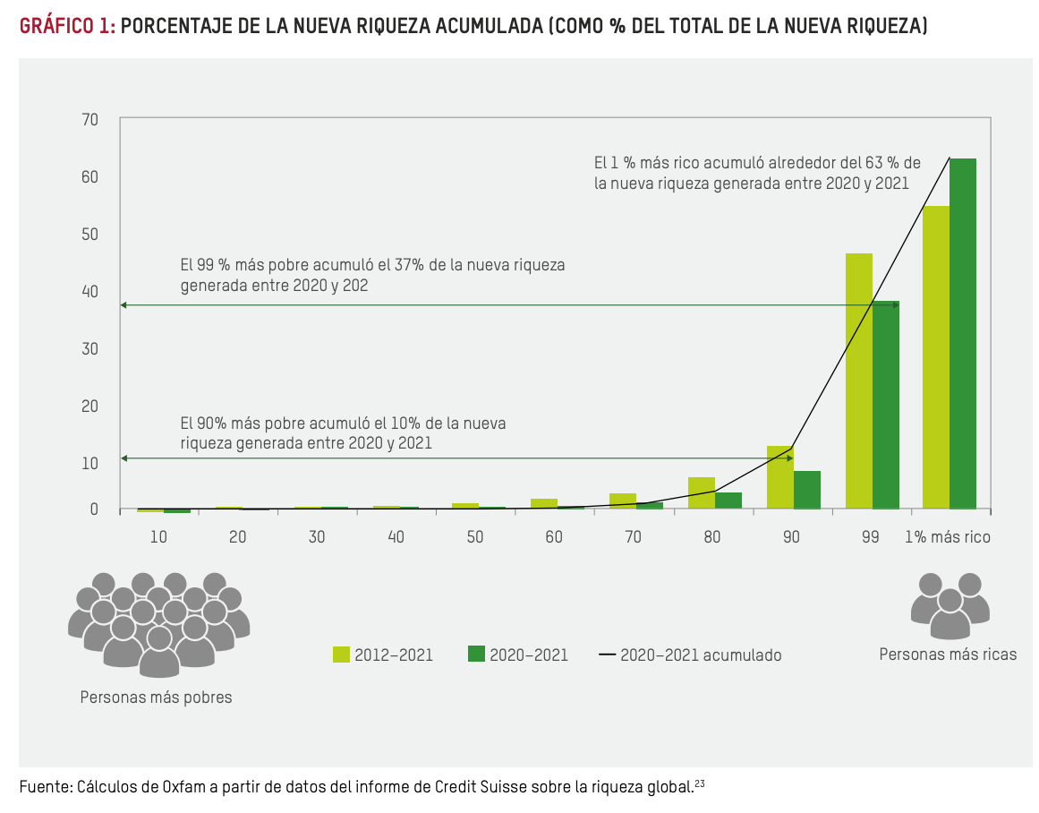 Imagen 3. La injusticia social y la crisis climática son dos caras de la misma moneda. Cada vez entra más dinero a pocas manos, las mismas que contaminan y que invierten dinero en las industrias más contaminantes. El incremento de la riqueza de los multimillonarios se puede leer en el reporte de OXFAM ‘Survival of the Richest’