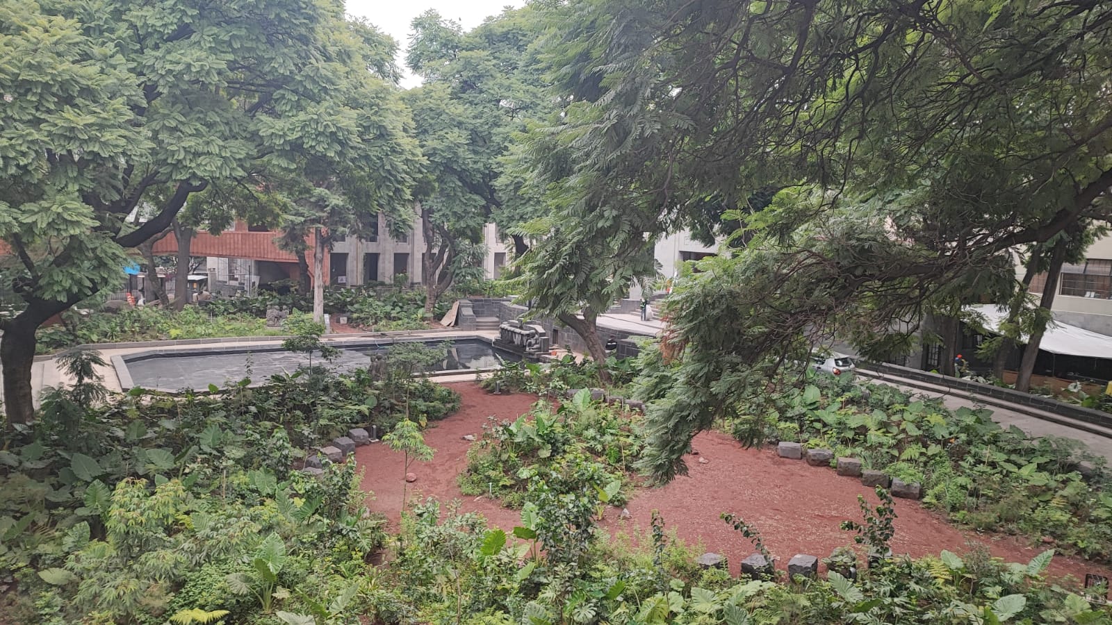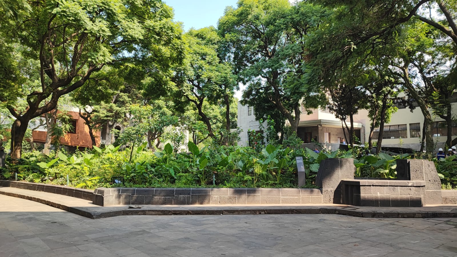 Sus pisos y paredes, grisáceos y lisos por su cantera Xaltocan, solo contrastan con los puentes con apariencia maderada o cobriza, que ambos brindan frescura al inmueble, apoyados de la arboleda y las más de 40 mil plantas endémicas sembradas en el lugar, declarado monumento artístico desde 1991 por el Instituto Nacional de Bellas Artes y Literatura (INBAL).