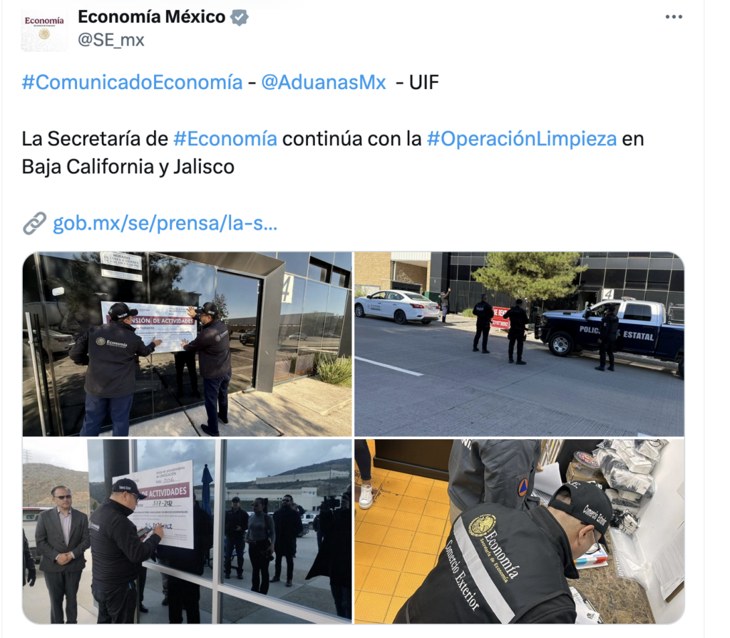 En este caso, el pasado 1 de abril se realizó un mega operativo para desarticular redes de contrabando, que se conoció como Operación Limpieza en Baja California y Jalisco. En ésta, participaron la Secretaría de Economía, la Unidad de Inteligencia Financiera, la ANAM y la Guardia Nacional, y derivó en la cancelación de cinco empresas beneficiarias del Programa IMMEX, señaladas de simular procesos de manufactura con empresas fachadas.