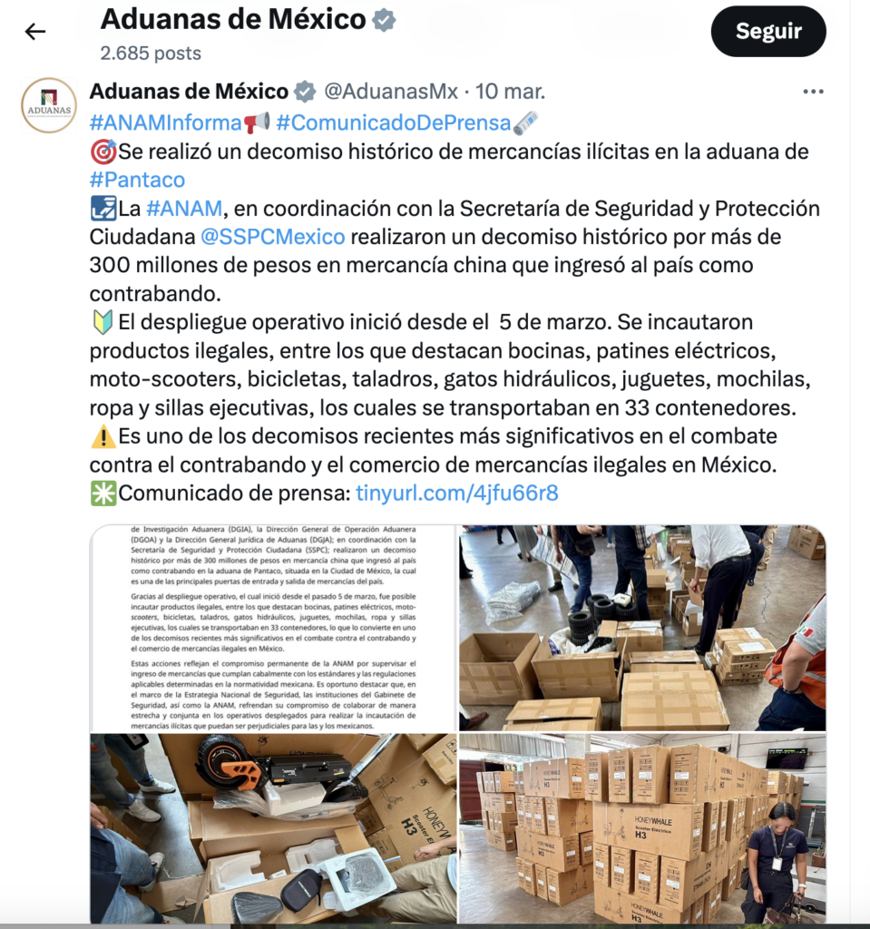 Incluso el pasado 2 de abril, la presidenta Sheinbaum declaró en su conferencia: “estamos haciendo un trabajo muy importante en Aduanas, muy importante. Fíjense, yo le doy seguimiento diario al ingreso de aduanas, diario: aduana por aduanal, tenemos una plataforma. Y me reúno a partir del mes pasado, cada mes, con los responsables de las aduanas para hablar con ellos de la recaudación de cada aduana del país, entre otras muchas cosas que estamos haciendo”.
