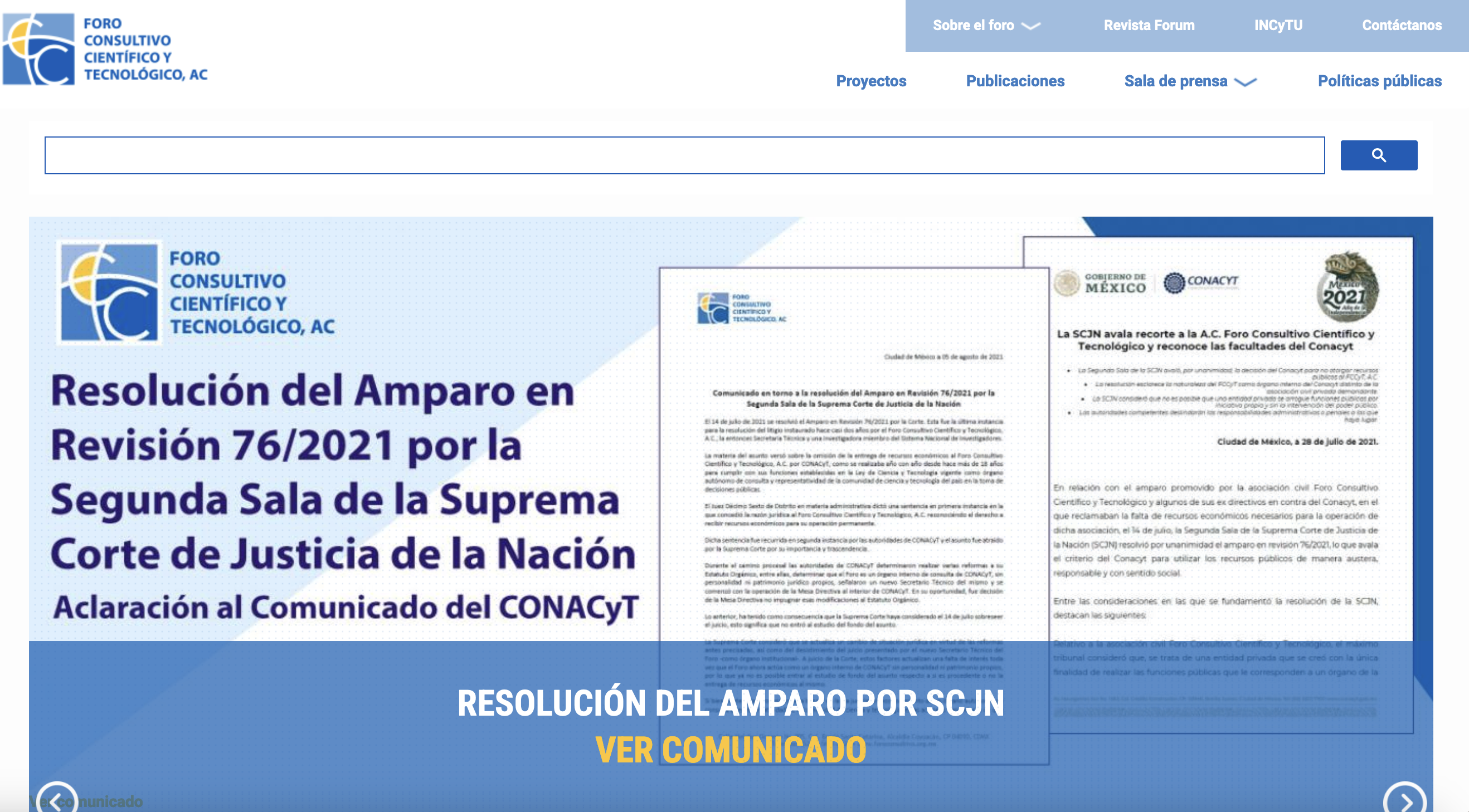 “Entonces esta solicitud no la podíamos entender. Nosotros ofrecimos aplicar la ley y sí, generar estas discusiones, fomentar este foro de consulta, donde se sentaban no solamente las instituciones de educación superior más importantes del país, sobre todo las nacionales y algunas poquitas de los estados –también había una sub-representación, digámoslo así: no estaban las interculturales, no estaba la UPN, no estaban muchas de las universidades de estados rezagados, como todo lo que ocurría antes en Conacyt neoliberal; había una cierta exclusión de ciertas disciplinas, de ciertas regiones, de ciertas instituciones y de la mayoría de las personas que formamos las grandes comunidades de HCTI (humanidades, ciencia, tecnología e innovación) del país–. Pero, agrega, la asociación civil Foro Consultivo “de alguna manera había secuestrado esta función que sí estaba amparada en la ley, se sentaban también algunas academias, desde luego la Academia Mexicana de Ciencias y algunas otras importantes, y también las organizaciones de la iniciativa privada, el Consejo Coordinador Empresarial, en fin, los diferentes órganos de coordinación de las empresas también tenían una silla en el Foro Consultivo Científico y Tecnológico”.