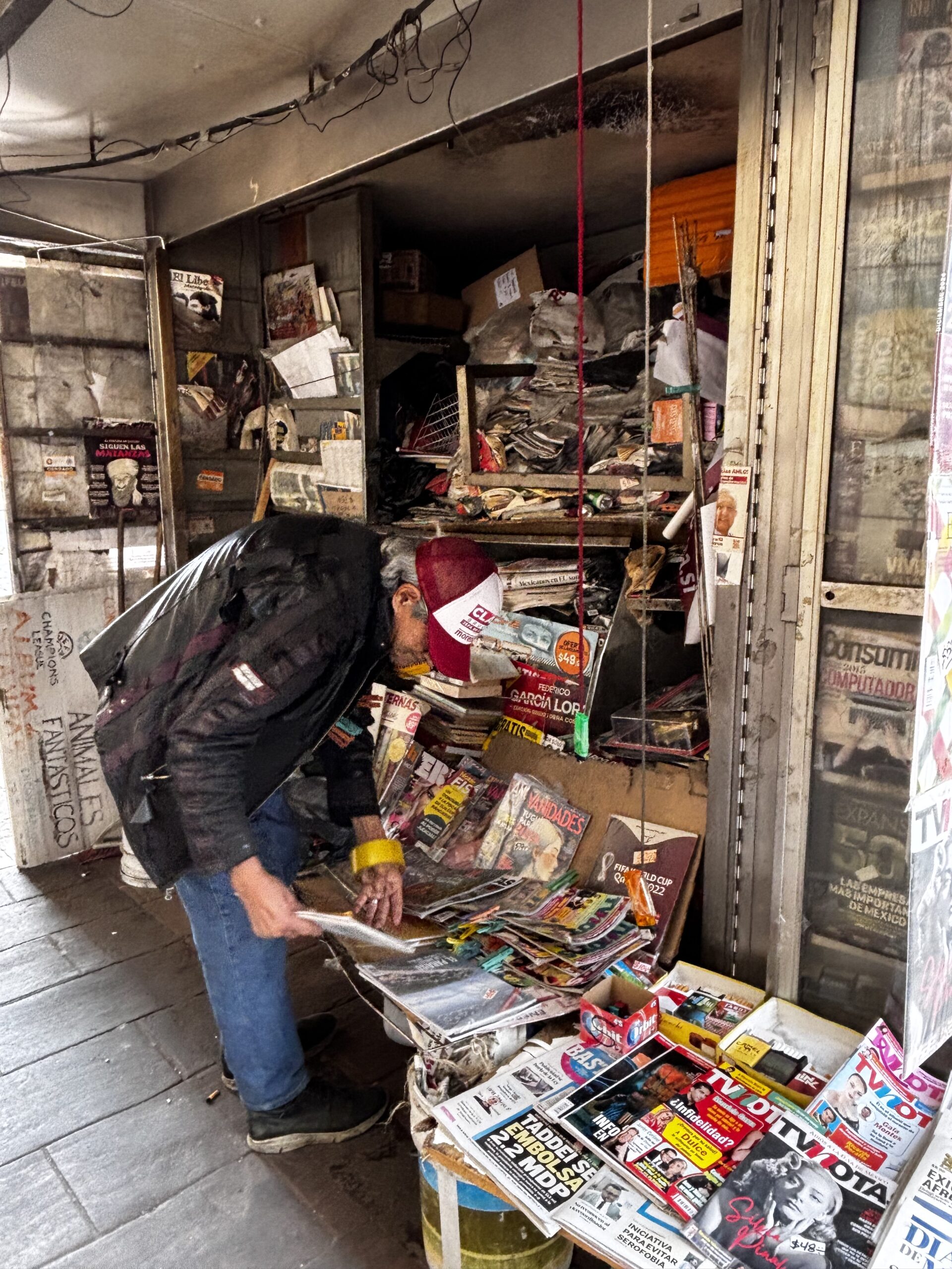 “Antes era más exclusivo; nada más se vendía pura revista y puro periódico. Hicieron un cambio porque la actualidad llevó a eso. Metieron una cláusula que se llama ‘atípicos’, que es la venta de todo lo que ves que no es revista y periódico. Sin embargo, muchos puestos ya no venden revistas y periódicos; sus puestos son de otra cosa porque ya no da”, explica el voceador Fabián.