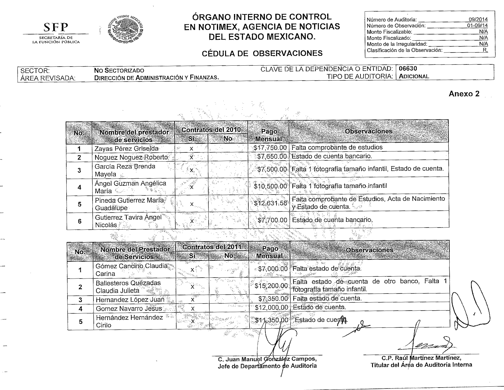 Aunado a ello, la Secretaría de la Función Pública –que encabeza la doctora Irma Eréndira Sandoval– cuenta con un historial de auditorías internas a Notimex practicadas durante el gobierno de Enrique Peña Nieto (y de las cuales Contralínea tiene copia). Éstas revelan presuntos actos de corrupción, incluidos pagos irregulares en las corresponsalías en el extranjero, evasión de impuestos, manejo irregular de cuotas al Instituto Mexicano del Seguro Social, gastos excesivos –incluido el concepto de asesorías–, contratos injustificados, entre otras irregularidades.