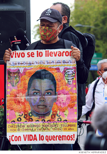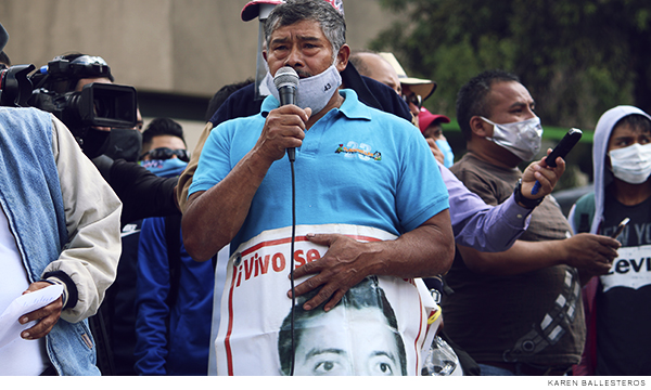 “Toda la vida de los padres se ha modificado. Los conflictos a los que la vida se enfrentan son mayores. Nunca los he oído decir que dejarán todo, sino al contrario, siempre escucho la convicción de continuar hasta encontrar a sus hijos. No se rinden. Siguen de pie y, con ánimo, exigiendo justicia. Las madres y los padres son admirables, al igual que su fuerza de seguir adelante, de pie y exigiendo a las autoridades que haya justicia”, detalla Vidulfo Rosales.